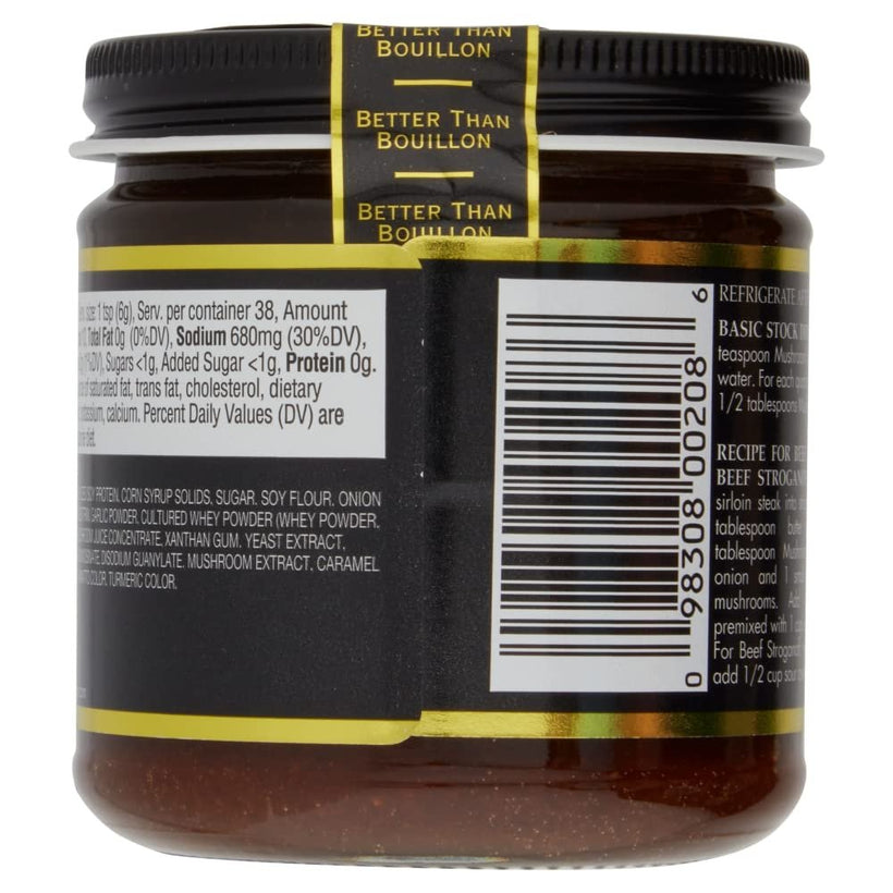 Better than Bouillon Concentrated Stocks are made with Roasted Chicken, Roasted Beef, Roasted Garlic or Seasoned Vegetables. This gives them a richer, more robust flavor than ordinary bouillons or soup bases. Our chicken tastes like chicken because it IS chicken; our beef tastes like beef because it IS beef. Better than Bouillon Concentrated Stocks are fat free and have 1/3 less salt than ordinary bouillons. Better Than Bouillon Mushroom Base is perfect for making Cream of Mushroom soup or Mushroom Gravy. Just add sautéed mushrooms.