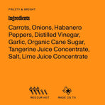 - Ingredients You Can Pronounce - Organic Carrots, Organic Onions, Organic Habanero Peppers, Organic Distilled Vinegar, Organic Garlic, Organic Tangerine Juice Concentrate, Salt, Organic Dates, Organic Raisins, Organic Lime Juice Concentrate.