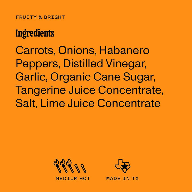 Our original elixir and most popular: meet the bottle that started it all. Fresh and bright, this Bird sings with a complex harmony of habanero peppers, garlic, carrots, and tangerine.