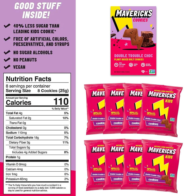 • Elevate your snacking experience with our delectable organic double trouble chocolate chip cookies. This healthy party favor bundle includes 2 boxes of Maverick Double Trouble Choc Plant Based Cookies, each containing 8 individually packaged non-gmo cookie pouches. This comes with a total of 16 bags – perfect for sharing with friends and family!