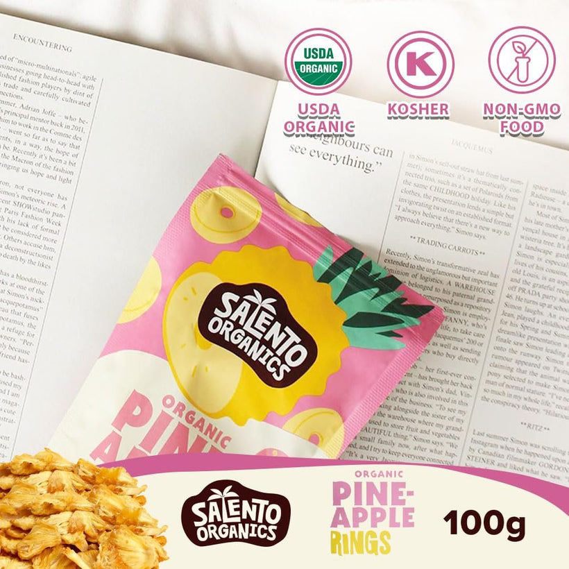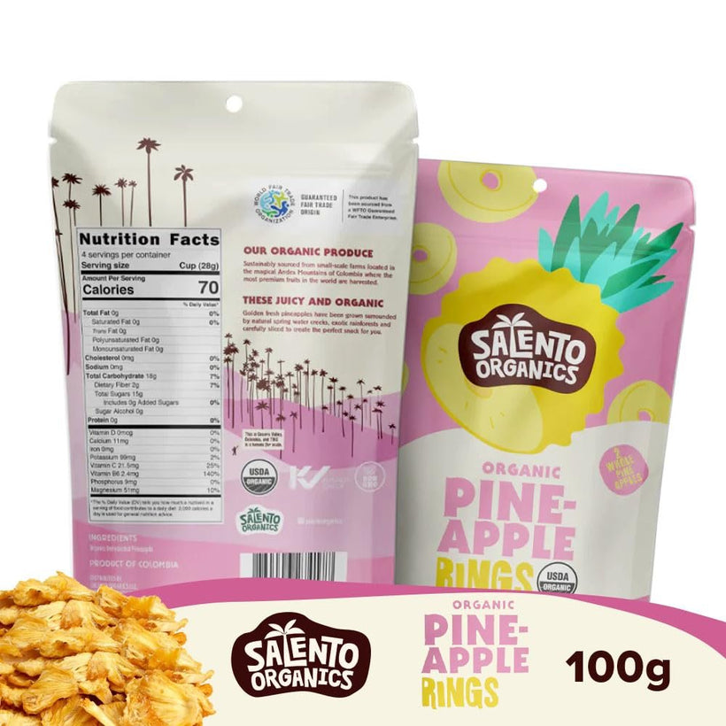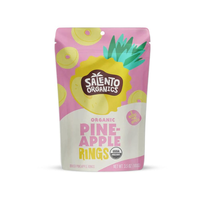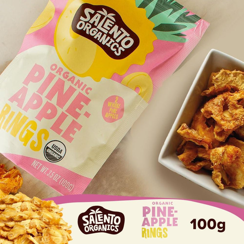 - DELICIOUS AND HEALTHY snacks for adults! Organic dried Pineapple rings are not only delicious, but they are also a great addition to a healthy diet. These can be enjoyed as a healthy alternative to candies. This bundle comes with 3 - Salento Dried Pineapple Rings Bags Organic, 3.5 oz