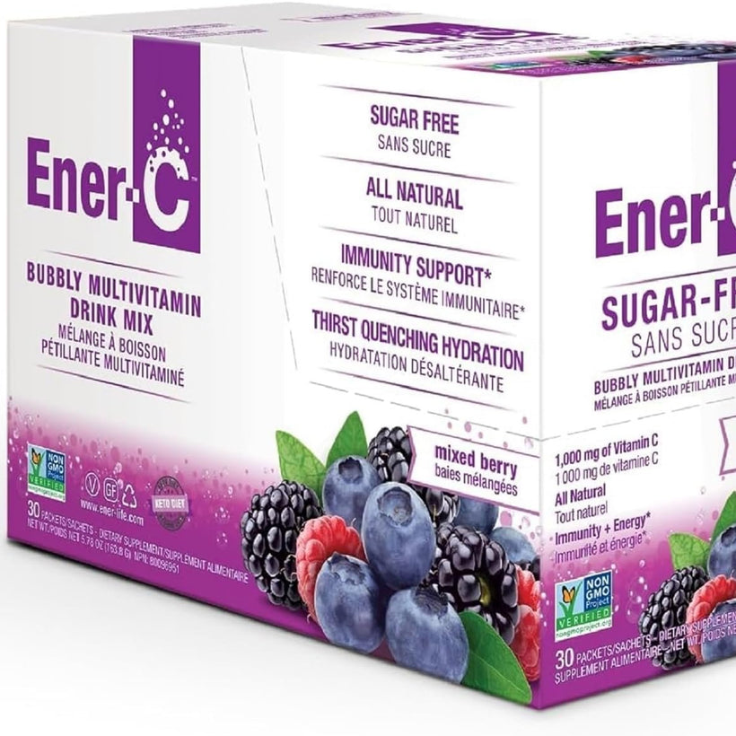 Ener-C is a Non-GMO Certified effervescent multivitamin drink mix in convenient dose sachets. Containing 1000mg of Vitamin C plus essential vitamins and minerals.