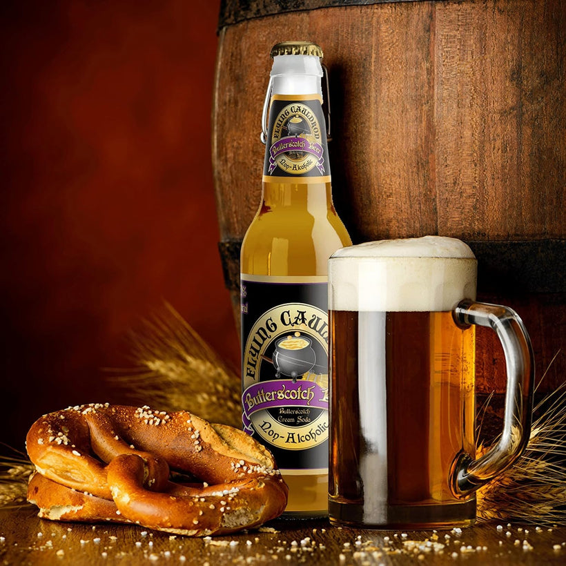 • For Butterscotch Beer Lovers: If you want to feel a little magic, all you have to do is try Flying Cauldron Butterbeer. A sweet drink without any alcohol that will take you to Hogwarts. a refreshing treat for summer. Butterscotch Beer is perfect for burgers, pizza, tacos, etc.