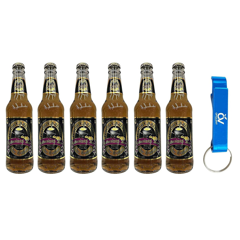 • Flying Cauldron Butterscotch 12oz (Pack of 6) Bundle with Opulent Variety Keychain Bottle Opener | Non-Alcoholic All-Natural and Caffeine Free Butter beer