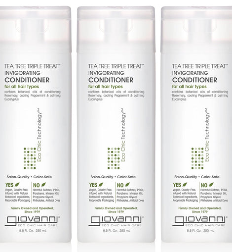 - FOR ALL HAIR TYPES - GIOVANNI Tea Tree Triple Treat Invigorating Conditioner helps scalp circulation, leaving dry or damaged hair feeling refreshed and renewed with every use