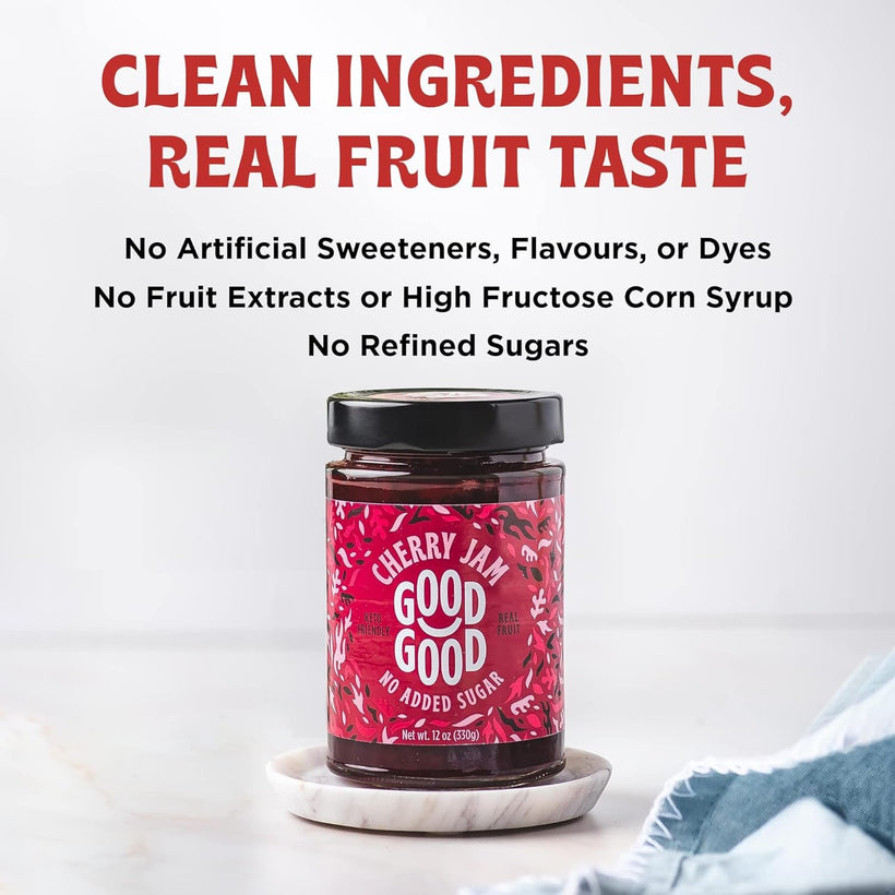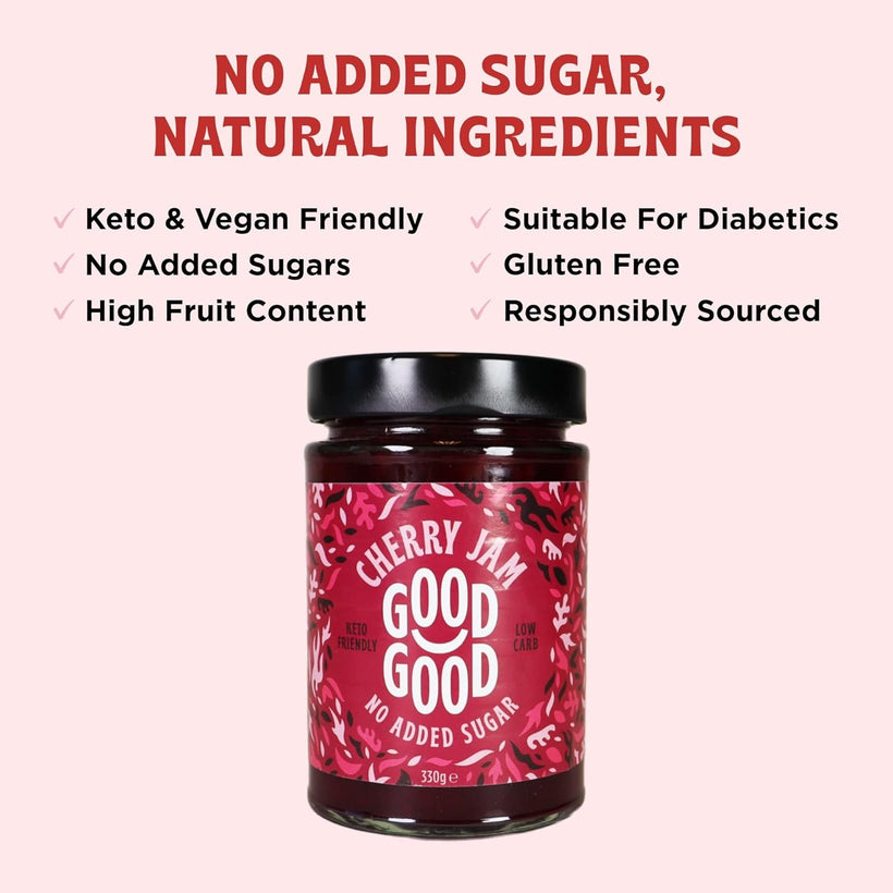 • GOOD GOOD No Added Sugar Cherry Jam - Keto Friendly Jelly - Low Carb, Low-Calorie and Vegan - Diabetic Friendly - 12oz / 330g (Pack of 1)