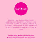 - Vegan - Palm oil Free - Plant & algae derived colors - No high fructose corn syrup