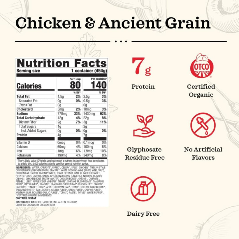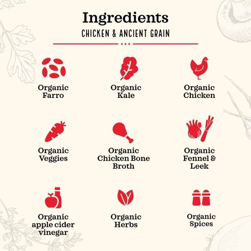 Herbal, hearty, tastes-like-homemade. Real bites of chicken, slow-cooked ancient grains, & a savory medley of vegetables meet in a rich, comforting broth. It’s a sensational soup disguised as me-time.