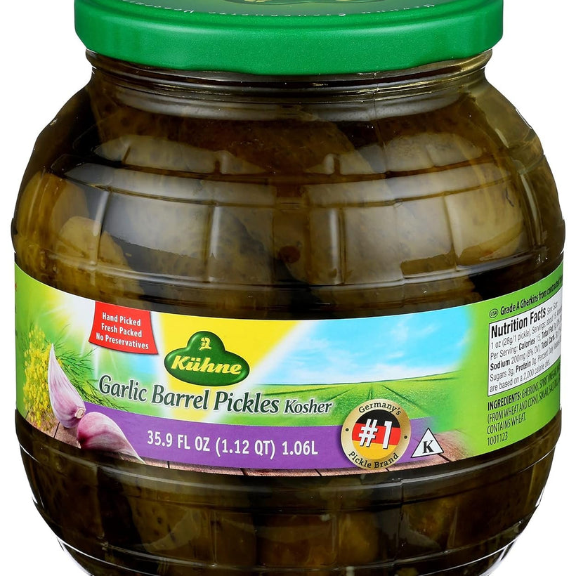 - Well seasoned, hand-picked garlic barrel pickles with a touch of garlic flavor