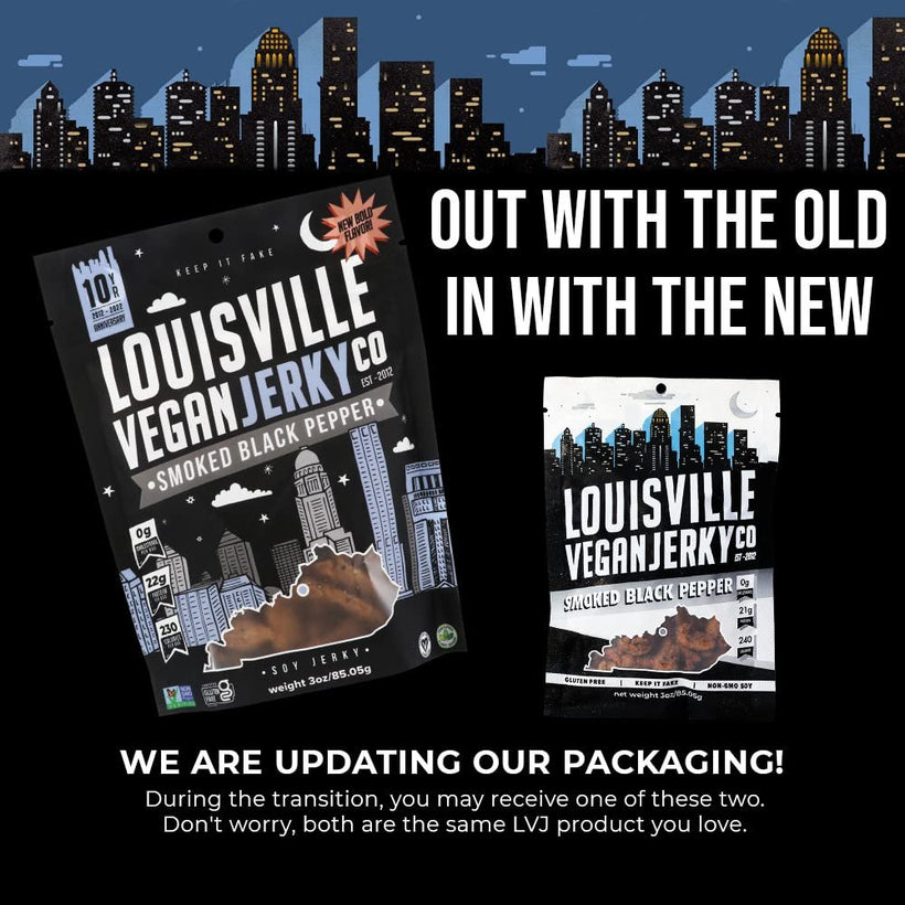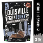 - FAKE MEAT, REAL MEATY FLAVOR: Louisville Vegan Jerky’s Smoked Black Pepper vegan jerky is salty, mild, & robust with just a hint of sweetness. Our vegan jerky is subtly spiced with organic black pepper, nutmeg, garlic, & onion.