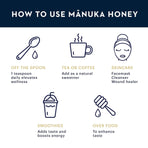- The magic of Manuka honey: Beyond drizzling on foods as a delicious spread or wholefood sweetener, Manuka honey can be used for skincare treatments, as a digestive soother, and for a natural pre- or post-workout boost