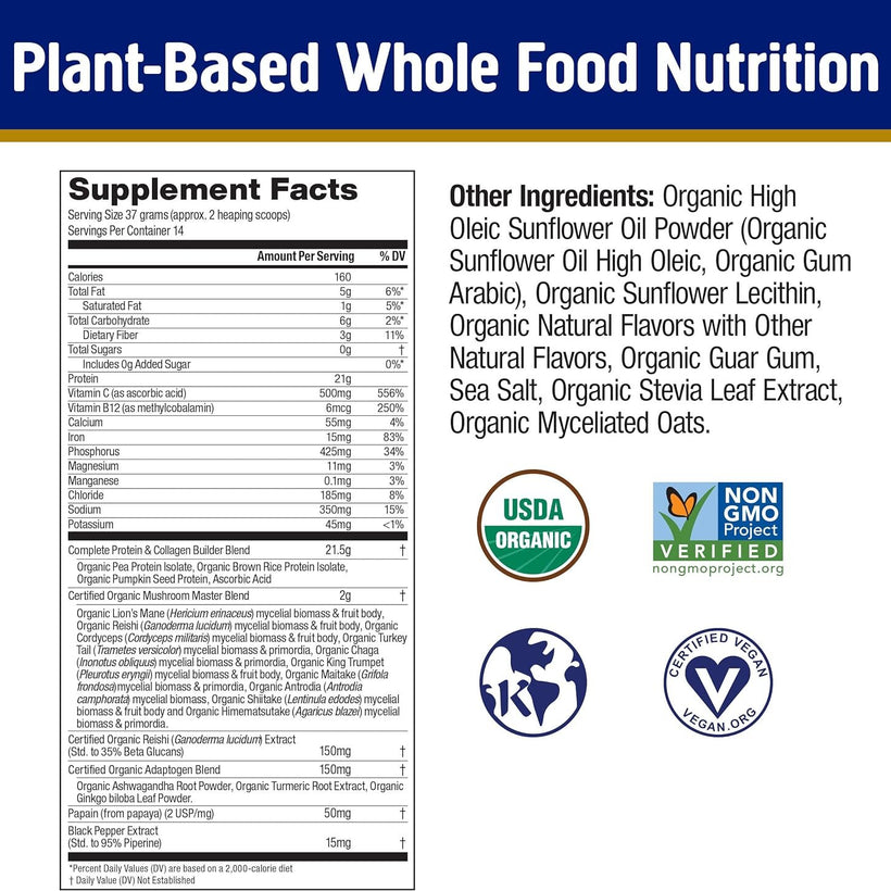 - Supercharge Your Recovery and Help Satisfy Hunger: This unique plant-based protein powder supplement from Om Mushroom Superfood offers a blend of 3 organic plant-based proteins, 10 organic whole food mushrooms plus 3 organic botanical adaptogens in one convenient powder to support your vibrant health