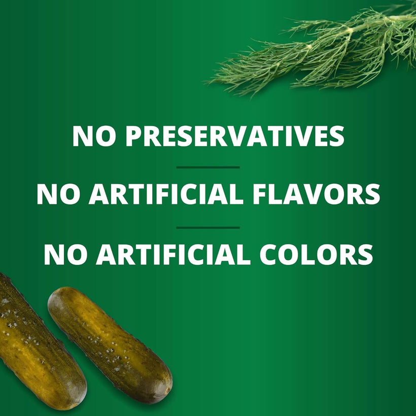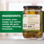 - INGREDIENTS: Cucumber, water, vinegar, salt, calcium chloride, dill, garlic, red pepper, flavorings. Pasteurized. Non-GMO, Kosher, Gluten Free, Corn Free, Dairy Free, Nut Free, No Artificial Color And No Preservatives.