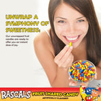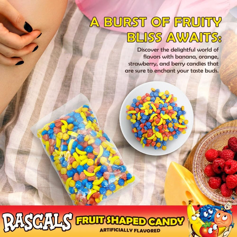 - A Burst of Fruity Bliss Awaits: Elevate your snacking experience with a generous 1.5 lbs of Rascals Assorted Fresh Fruit Shaped Candy. Discover the delightful world of flavors with banana, orange, strawberry, and berry candies that are sure to enchant your taste buds.