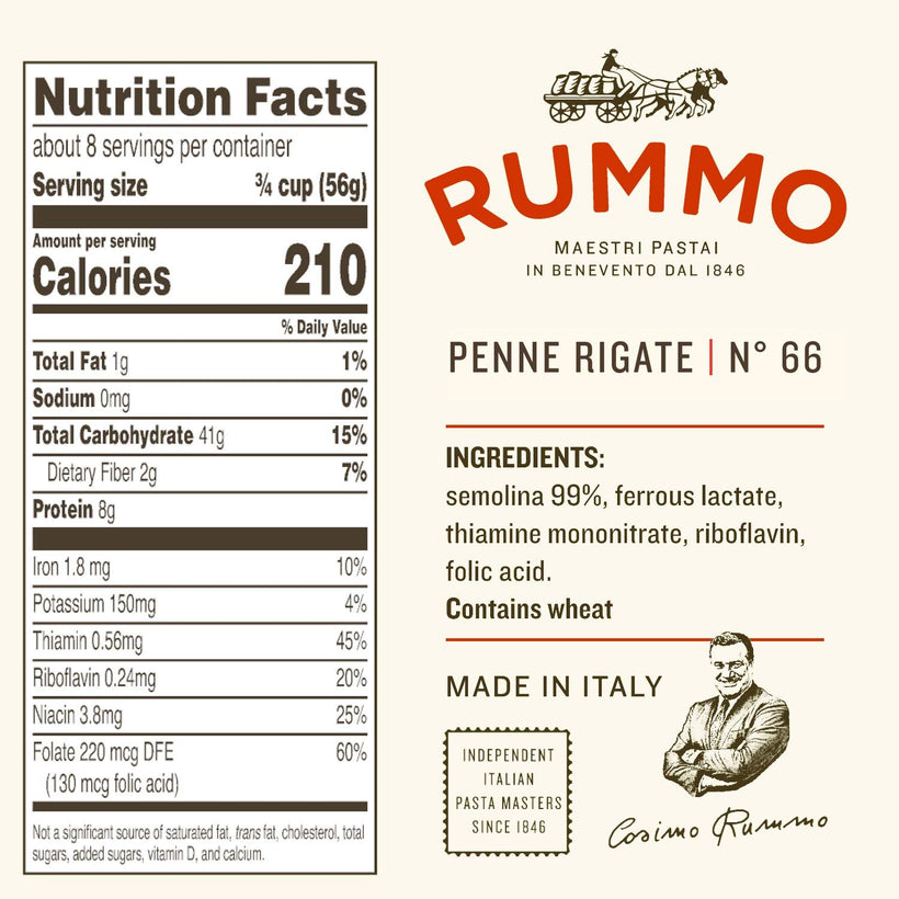 - PENNE RIGATE NO. 66 PASTA NOODLES by Rummo, a family business of master pasta makers since 1846. Your sauce deserves a great pasta!