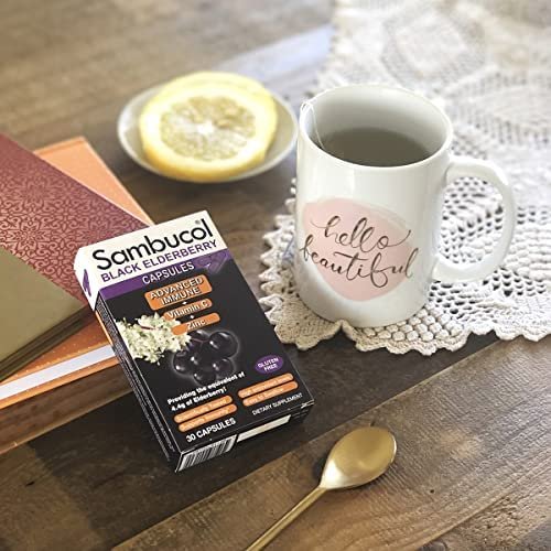 • Sambucol Black Elderberry Capsules - Advanced Immune, Vitamin C and Zinc, Elderberry Capsules, Immune Support Supplement, Black Elderberry Supplements, Gluten Free, Easy to Swallow Capsules - 30 Count