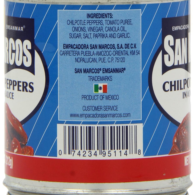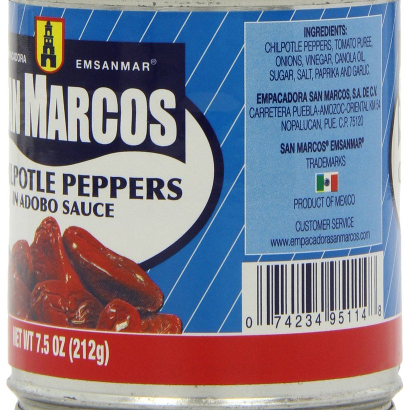 San Marcos Chilpotle Peppers in Adobo Sauce, 7.5 Oz., (Pack of 4 Cans)