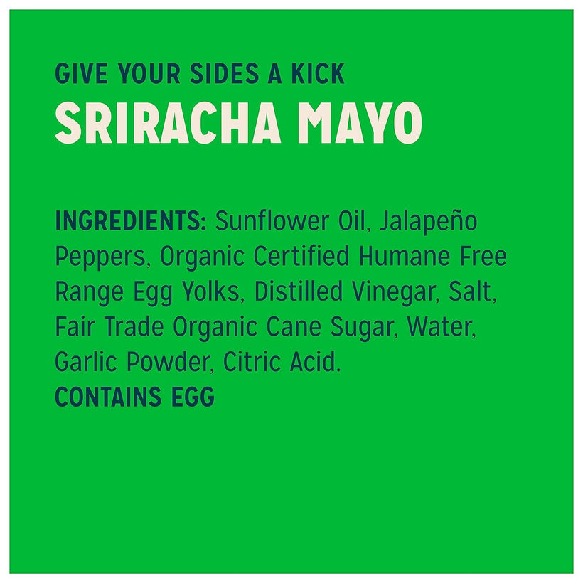 - Our Sriracha Mayonnaise is made with 100% sunflower oil, jalapeño peppers, and a touch of garlic powder.