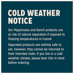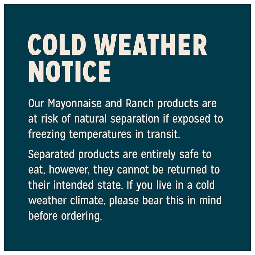 - COLD WEATHER WARNING: During the winter, condiments can freeze in transit. While safe to eat, it will not look or taste appealing. You may wish to delay ordering until temps are warmer.