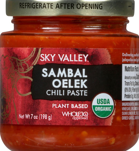 Sky Valley Sambal Oelek Chili Paste - Red Chili Paste, Made with Red Jalapenos & Garlic, Gluten Free, Vegan, Keto, USDA Organic, Non-GMO, Sambal Oelek Sauce, Chili Paste Asian - 7 Oz