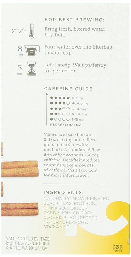 • Tazo Tea, Chai Decaf Tea, Tea Bags, 20 ct