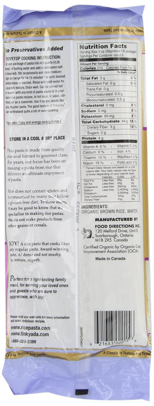 Tinkyada® Pasta Joy™ Ready Organic Brown Rice Pasta Spaghetti Style.A classic in texture and taste.100% Organic.Certified organic by Organic Crop Improvement Association (OCIA)....