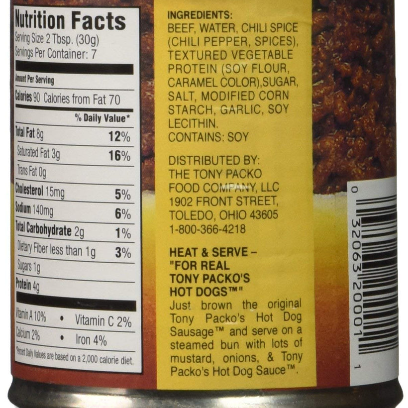 - TONY PACKO'S OF TONY PACKO'S HOT DOG CHILI SAUCE with BEEF - 7.5OZ CAN