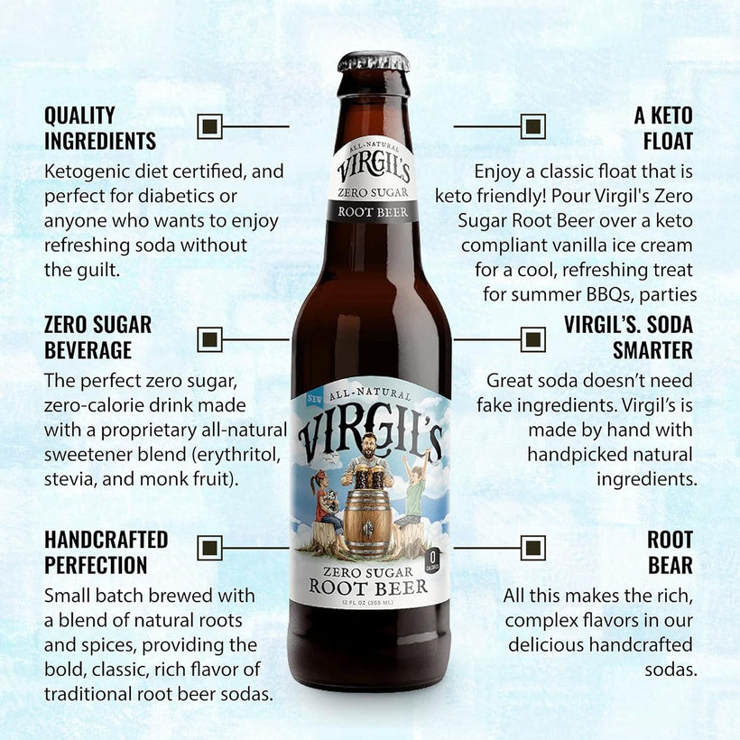 - Indulge in a classic float without breaking your keto diet with this keto-friendly option. Simply pour Virgil's Zero Sugar Root Beer over a vanilla ice cream that is compliant with the keto diet, and you'll have a delicious and refreshing treat that is perfect for summer BBQs, parties, or any time you're in the mood for a sweet treat