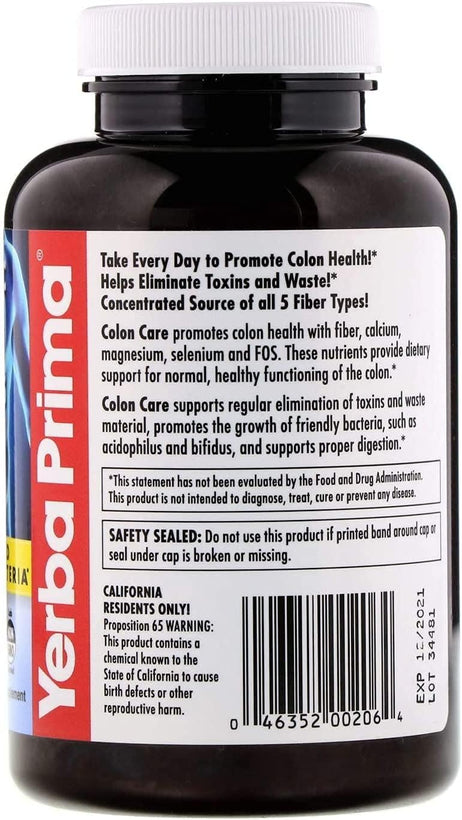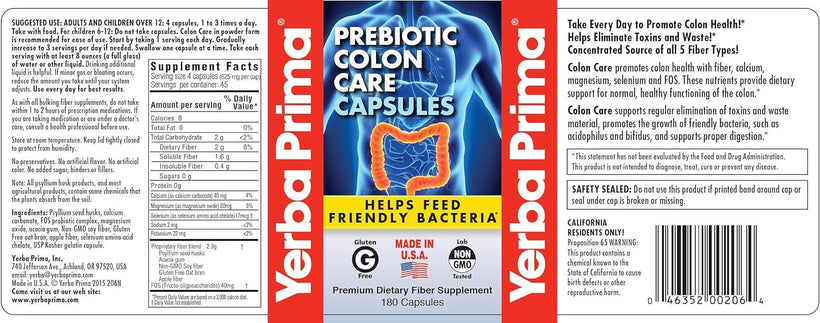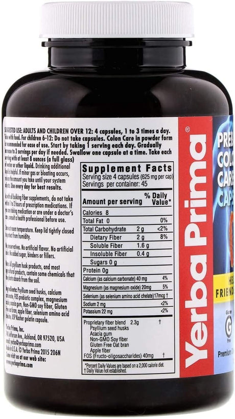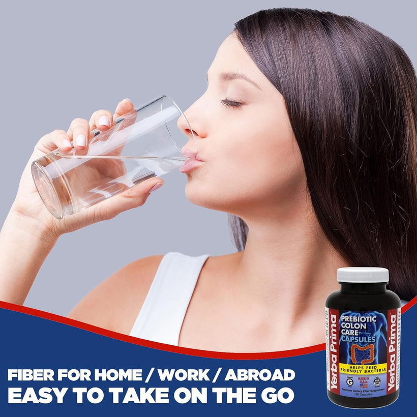 • Yerba Prima Prebiotic Colon Care Capsules Dietary Fiber, 180 Count, (Pack of 2) - Five Forms of Fiber Plus FOS Prebiotics Supplement - Soluble & Insoluble for Regularity & Digestive Support