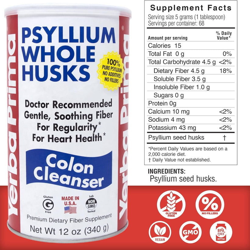 - ECONOMICAL: Includes Two (2) jars of All Natural Psyllium Whole Husk 12oz, a colon cleansing dietary fiber to promote regularity and support overall health