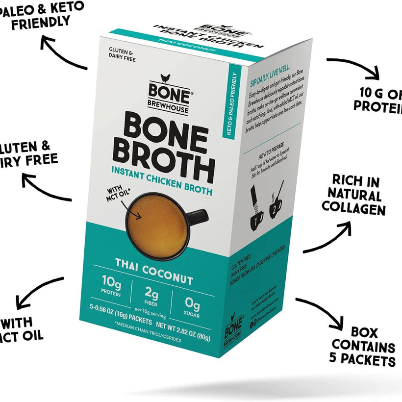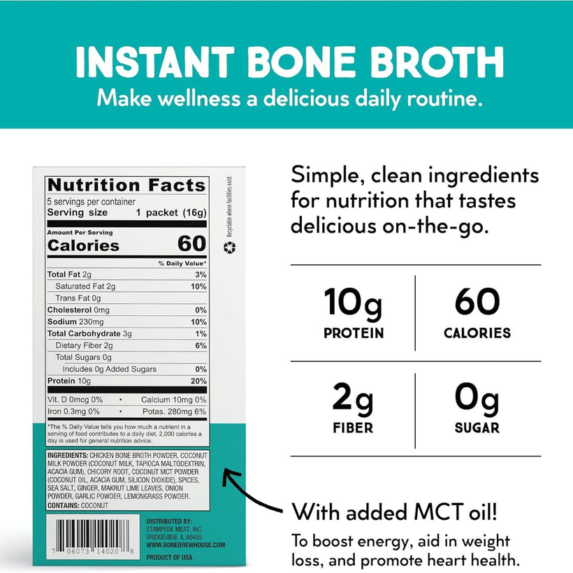 • Bone Brewhouse - 9 Pack - Chicken Bone Broth Protein Powder - Thai Coconut Flavor