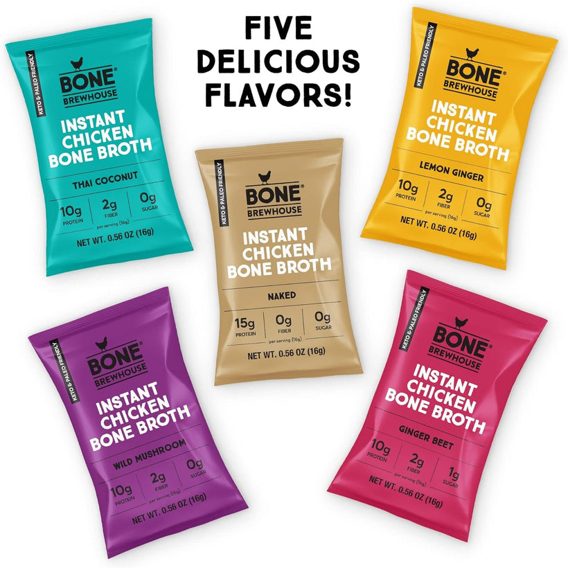 • IMPORTANT NUTRITION: An immune-boosting, protein powerhouse, our Thai inspired ingredients makes this broth both delicious and nutritious. Keto + paleo-friendly, gluten, dairy + soy-free. Just add a cup of hot water, stir, and enjoy. Other flavors: Naked, Lemon Ginger and Ginger Beet.