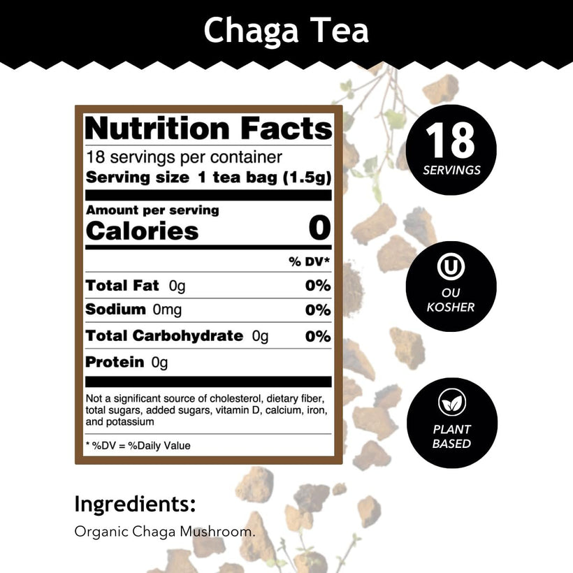 - CHAGA TEA - Abundant in antioxidants and nutrients, our Chaga Mushroom Tea promotes healing and wellness.