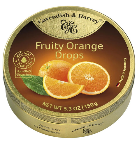 Finally...A luxury indulgence for the senses in a fruit flavored hard candy. Enjoy a fruity indulgence and extraordinary flavors in a premium gold tin with Cavendish and Harvey hard candies. For over seventy years Cavendish and Harvey have created candies known for consistent taste enjoyment and constant high quality. Packaged in a resealable candy tin the candy drops are dusted with confectioner's sugar promise pure fruity joy down to the last candy. Natural fruit flavoring and colors are combined to create a unique candy drop that's imported from Germany.