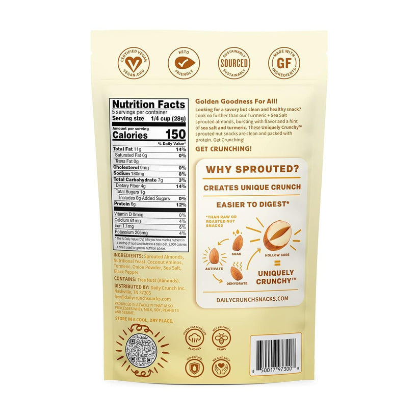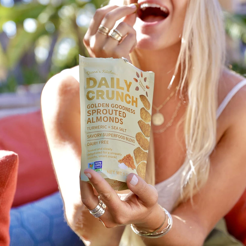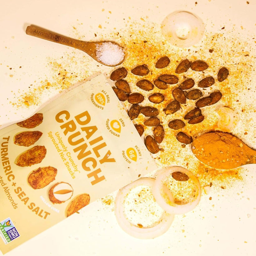 • PERFECT SNACK FOR GATHERINGS: Daily Crunch Sprouted Almonds are the perfect addition to any party snack platter or charcuterie board. Daily Crunch is the perfect size for a stocking stuffer gift as well! Be the best host or hostess this season by adding Daily Crunch to any party trail mix or meat and cheese board. Our sprouted almonds are the perfect crunchy addition to any party!