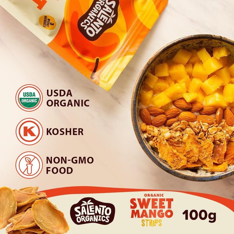 - DELICIOUS AND HEALTHY snacks for adults! Organic mango strips are not only delicious, but they are also a great addition to a healthy diet. These can be enjoyed as a healthy alternative to candies. This bundle comes with 3 - Salento Sweet Mango Strips Organic, 3.5 oz