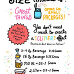 Create shimmer and sparkle in your beverages and liquids with our edible glitter for drinks. Shake into cocktails, coffee, wine, beer, sparkling waters, teas, kids' drinks, fruit punch and watch as a shimmery, glittering effect magically appears once the glitter dust is added to the beverages!