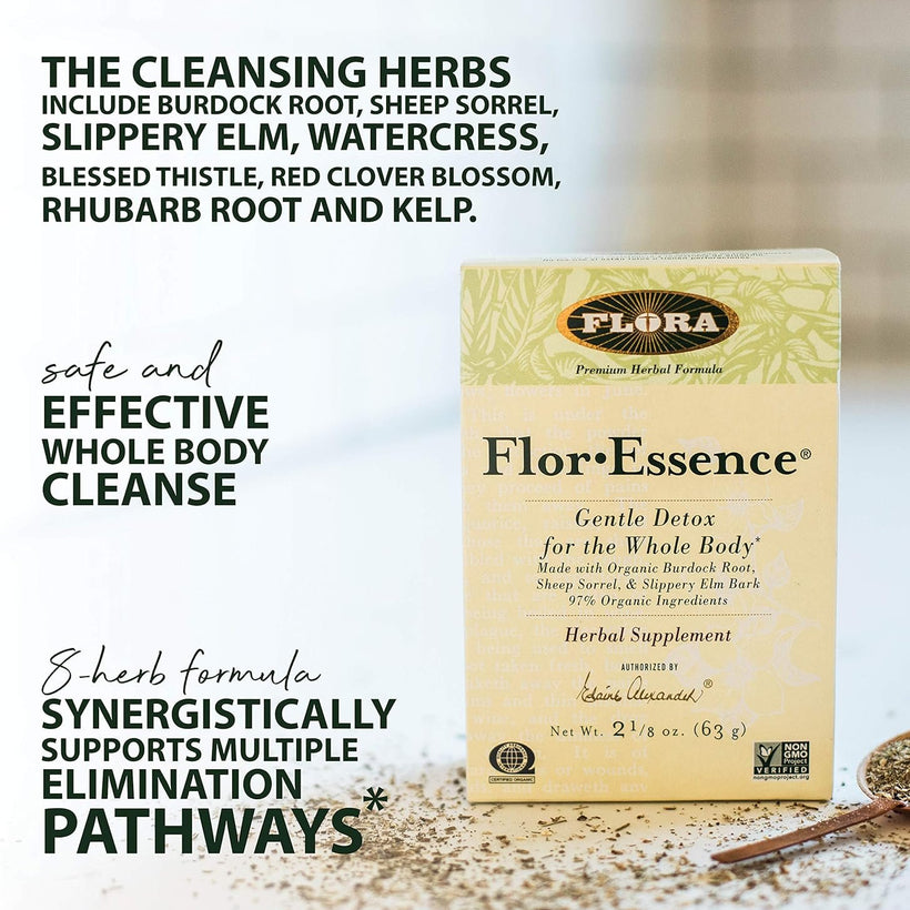 - DETOX & CLEANSE AT THE CELLULAR LEVEL: Flora FlorEssence Dry Tea Blend is a natural way to detox & cleanse your body at the cellular level of the toxins built up from everyday life.