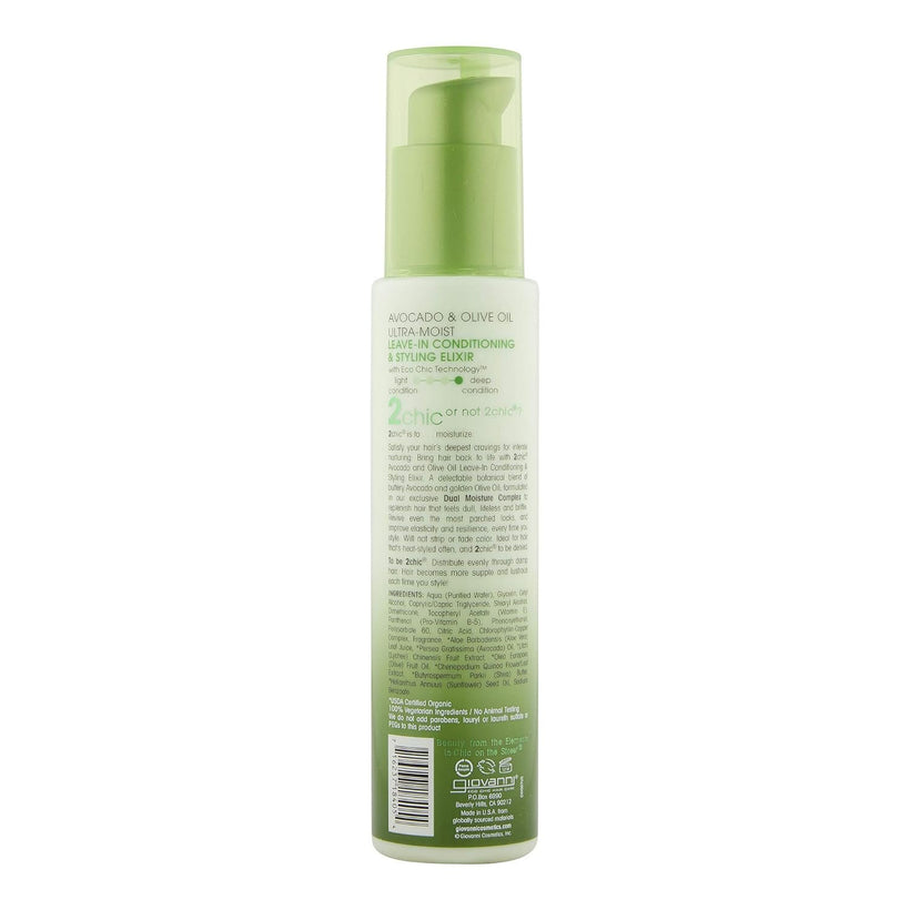 • GIOVANNI 2chic Ultra-Moist Leave-In Conditioning Styling Elixir - Smoothes Frizz Prevents Breakage, For Dry & Damaged Hair, Avocado & Olive Oil, Enriched with Aloe Vera, Shea Butter - 4 fl oz