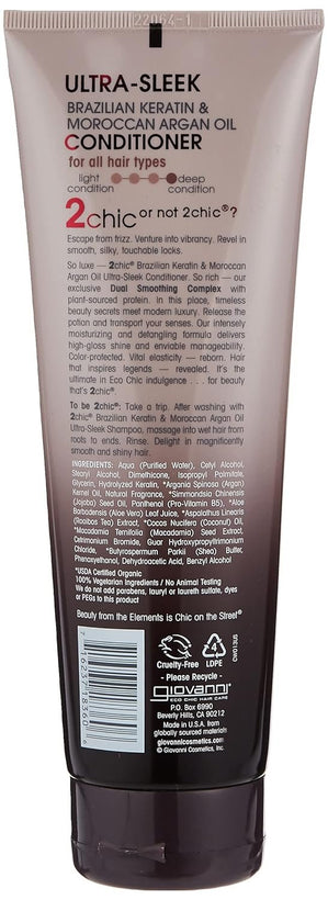 - DEEP MOISTURE - Powered by Phyto-Keratin proteins and Argan Oil, GIOVANNI 2chic Ultra-Sleek Conditioner is intensely moisturizing, providing you with strong, smooth, soft and frizz free hair