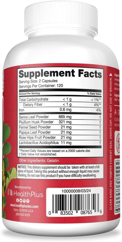 - NATURALLY SOURCED INGREDIENTS: Whole Psyllium Husk fiber supports regular bowel movements and may promote heart health, Senna Leaf encourages waste elimination, and Lactobacillus Acidophilus is a healthy gut bacteria probiotic to support digestive regulation*