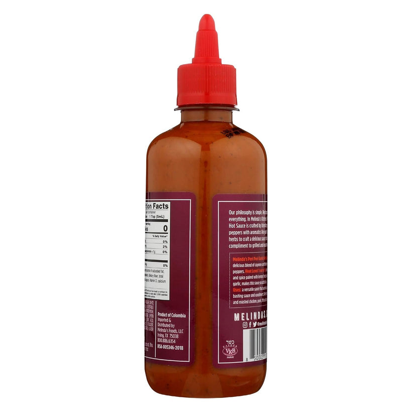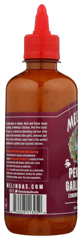 • Melinda’s Peri Peri Garlic Hot Sauce: a delicious blend of cayenne and habanero peppers.