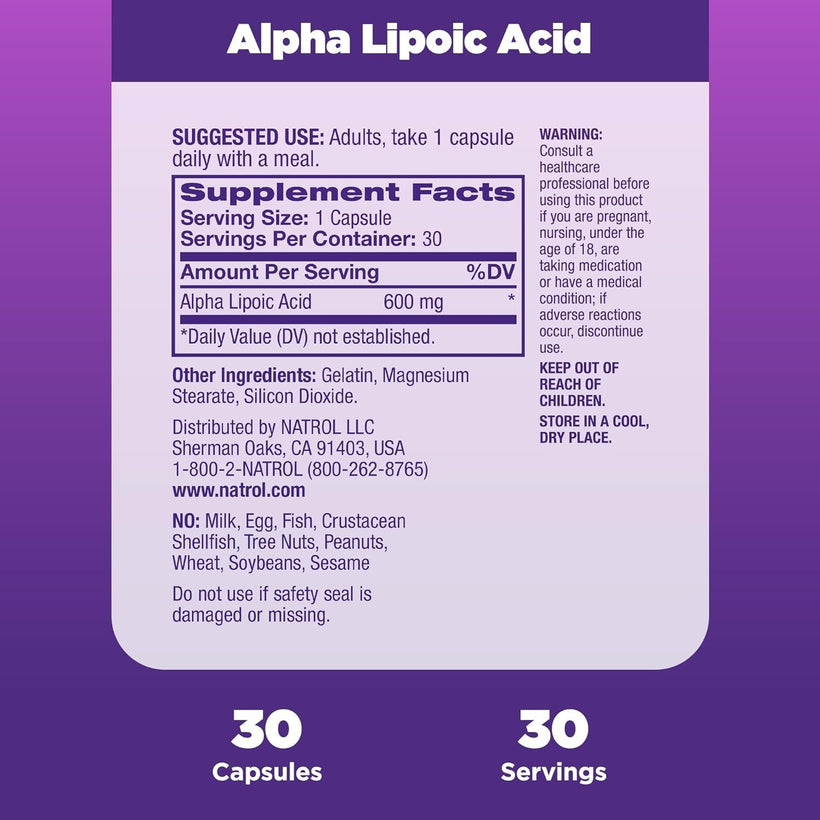Natrol, Alpha Lipoic Acid Capsules, Antioxidant Protection Supplement, 600 mg, 30 Count