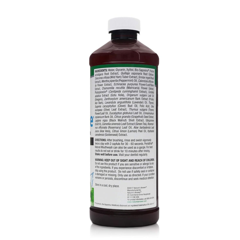 - Only PerioBrite Mouthwash contains a unique combination of soothing wildcrafted herbs, well-known for their cleansing action, together with CoQ10, Folic Acid, Oregano, Cinnamon, and Clove to support tissue and gum health.