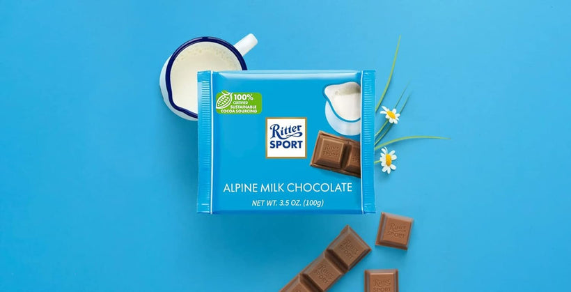 Ritter Sport, Alpine Milk Chocolate is pure chocolate enjoyment. Not just because of its delicious blend of 100 percent pure alpine milk and 30 percent specially roasted, full b...