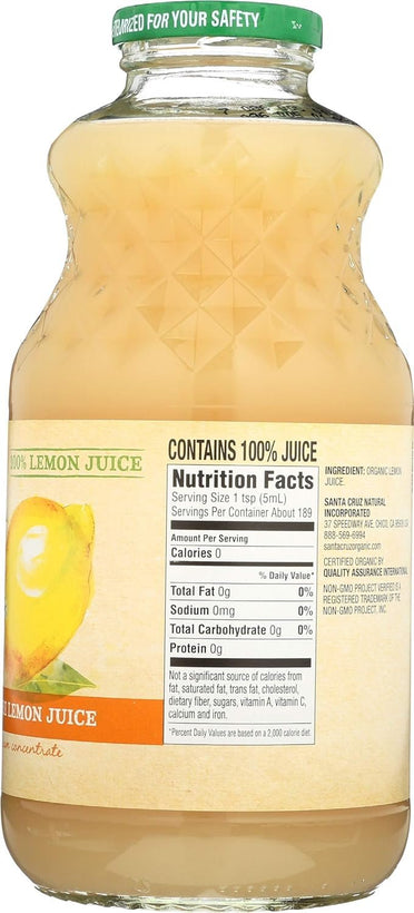 • Santa Cruz, Organic 100% Pure Lemon Juice, 32 Fl Oz Bottle