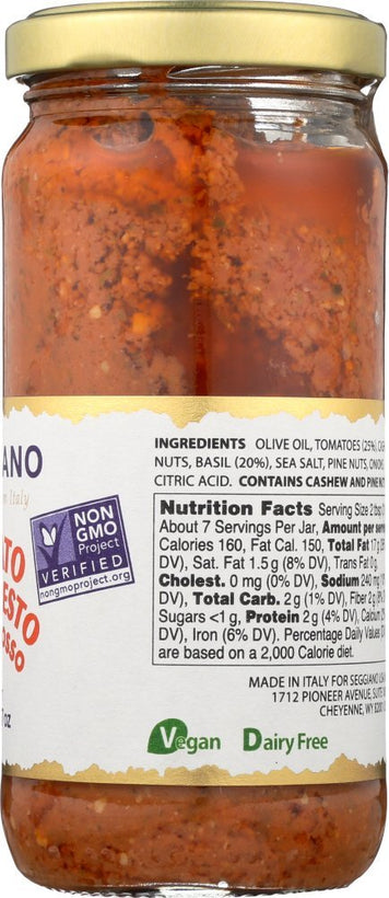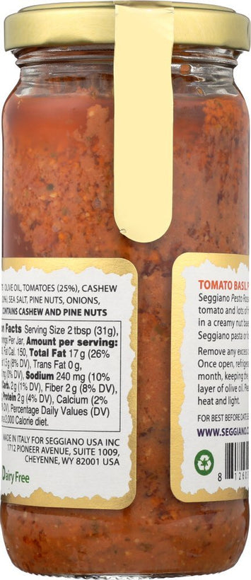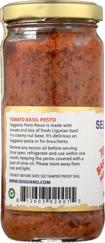 Seggiano pesto rosso is made with tomato and lots of fresh ligurian basil in a creamy nut base. It's delicious on Seggiano pasta or for bruschetta.