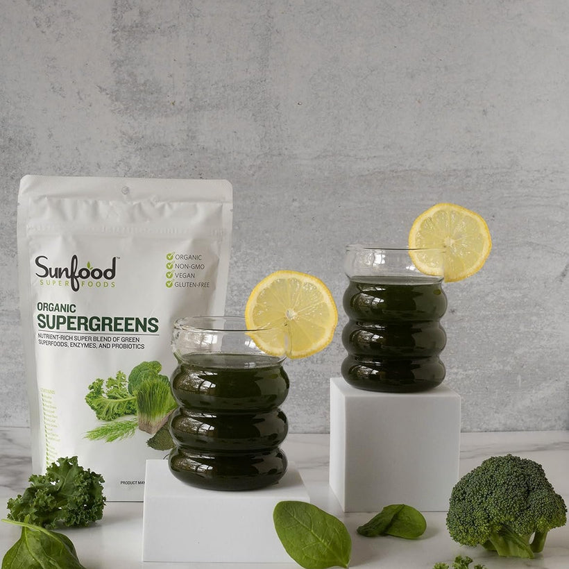 - ORGANIC INGREDIENTS: We use organic ingredients in our Supergreens supplement to ensure the quality and integrity of the nutrients and enzymes. This includes spirulina powder, chlorella powder, whole leaf wheat grass, grass juice powder, broccoli powder, ginger root and more. Whether you live an active lifestyle or aim to increase your intake of greens, Supergreens is the super powder for your daily routine.