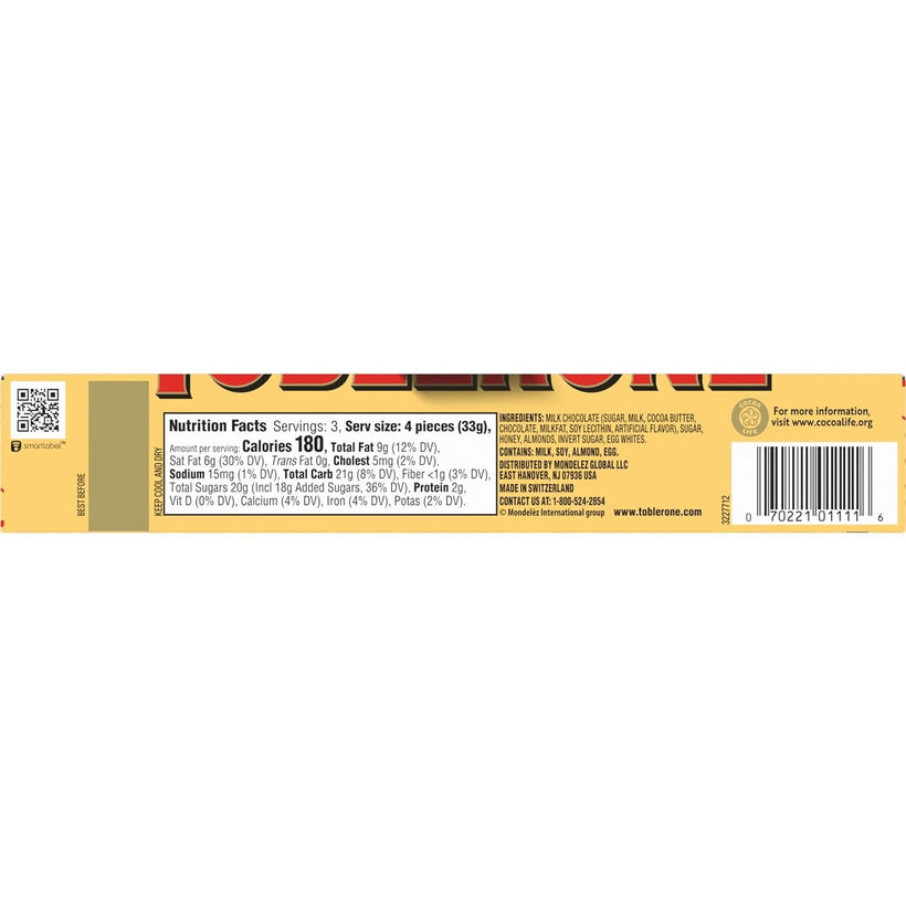 Toblerone Milk Chocolate Bars feature the iconic and unmistakable triangular chocolate peaks and a distinctive taste that's been loved for over 100 years. Known for its heritage in Swiss chocolate making, the Toblerone brand crafts its chocolate bars with high-quality ingredients to satisfy the tastes of any chocolate lover. Ideal for gifting and sharing, these milk chocolate candy bars are great for Easter, Valentine’s Day, Christmas, and other celebrations for chocolate-loving friends, family and coworkers. Keep a stash of these European chocolate bars in your office for a sweet snack or crumble as a topping on your favorite desserts.