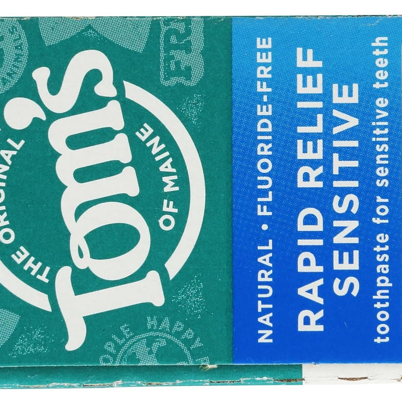Tom's of Maine Rapid Relief Sensitive Fluoride Free Toothpaste, 4 Ounce - 6 per case. HELPS PREVENT TARTAR BUILDUP: Tom's of Maine Natural Rapid Relief Sensitive Fluoride-Free...